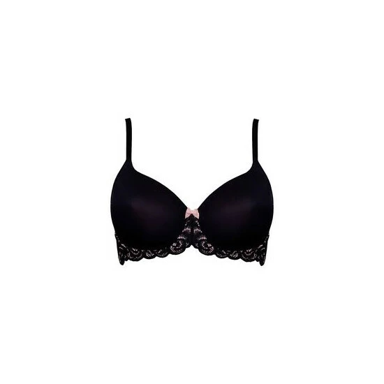 If T-shirt bras feature heavily in your lingerie collection, it’s time for a pretty new update! Our Romance version offers that same smooth look and rounded shape. The moulded microfibre cups feel comfy and while the majority of the bra is in solid black, you’ll love the dusky rose contrast lining and bow! Match with the Romance Briefs to complete your look.