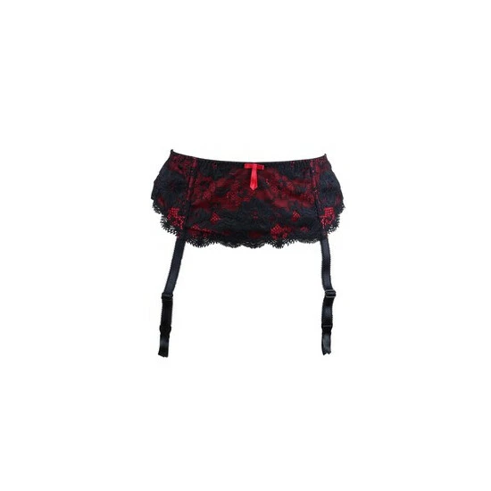 A sexy addition to an alluring lingerie set. The Amour Suspender from Pour Moi is styled with an overlay of gorgeous floral lace. This suspender belt has adjustable suspender attachments trimmed with bows and a hook and eye fastening.