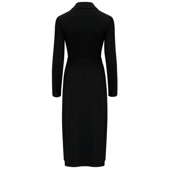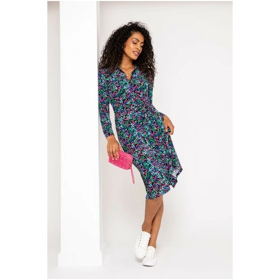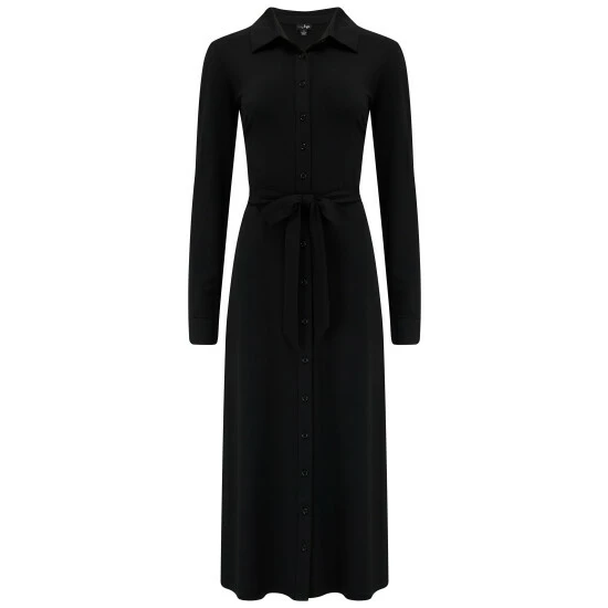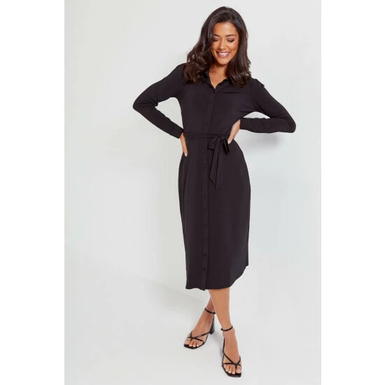 Comfortable and stylish, you can t go wrong in the Bailey Slinky Jersey Midi Shirt Dress. Designed with D+ in mind, so you never have to compromise on style. This long sleeve button through shirt dress is finished with cuff button detailing and fabric belt for ultimate comfort. This midi length style looks great paired with your favourite boots and jacket. We take the impact that our business has on the planet seriously that is why our Bailey Slinky Jersey Midi Shirt Dress is made from recycled materials.
