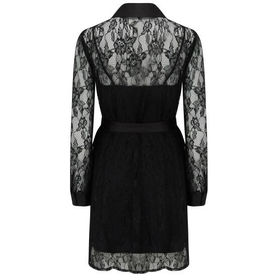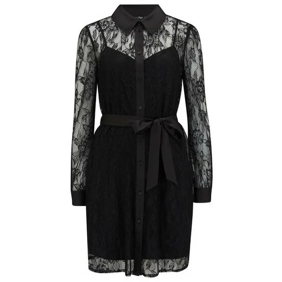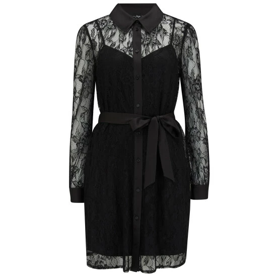 Pour Moi Black Clara Long Sleeve Lace Shirt Dress