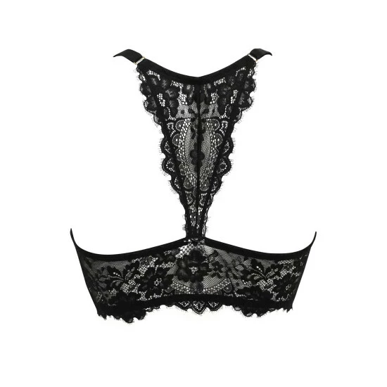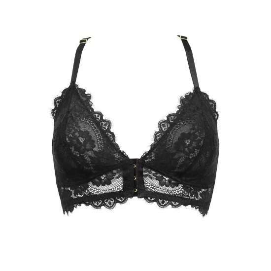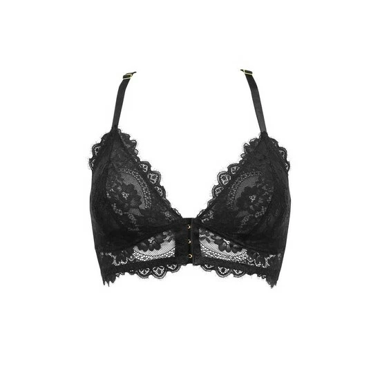 Non wiredNon PaddedLongline triangle shapeFully adjustable strapsFront fastening with luxe gold hardwareBeautiful Eyelash Lace with scalloped edgingRacerback Lace V feature.