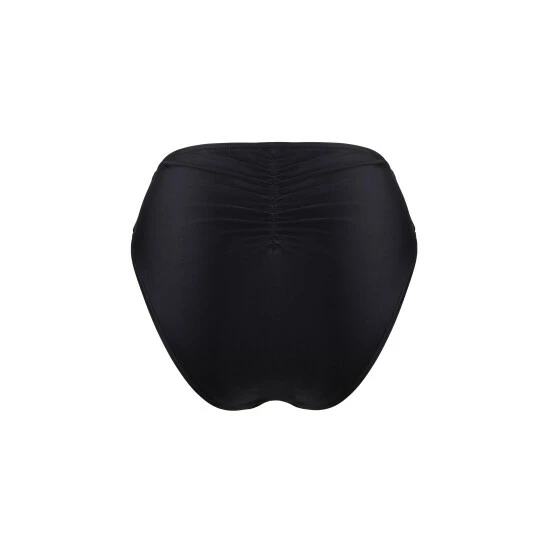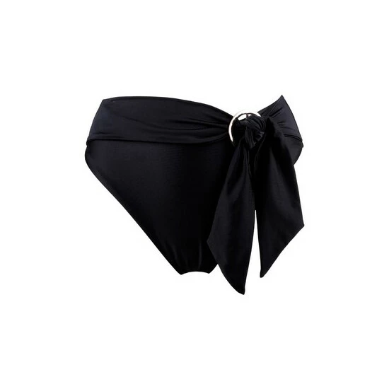 Luxe shine fabricHigh waisted high leg shapeGood coverageOversized belt tie feature with gold feature ring detail Ruched back feature to emphasize shape.