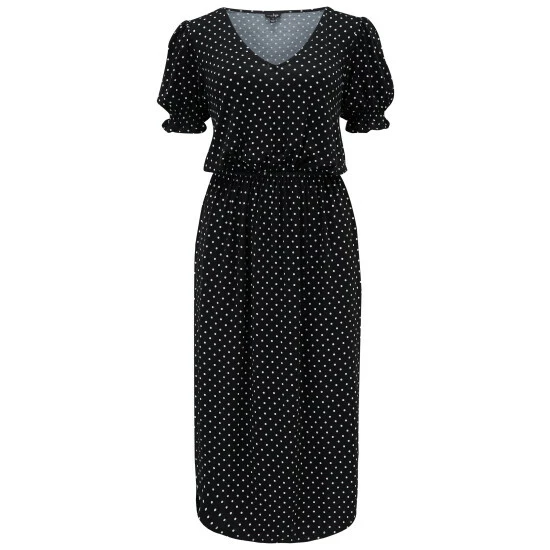 Pour Moi Black Jenny Puff Sleeve Jersey Midi Dress