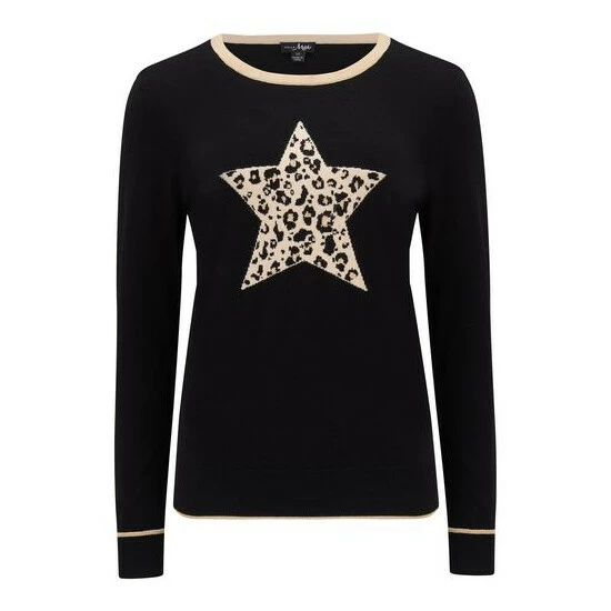 Time to update your basics? We ve got the jumper for you! This slim fit jumper with leopard star design is the perfect companion for your favourite pair of jeans. Take on the new season comfortably with this stylish long sleeve jumper.