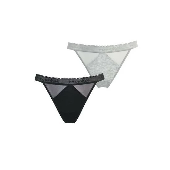 Thong shapeString backGood coverage on frontElasticated logo mesh waistband with scalloped edging detailsuper soft mirco front panel with sheer mesh detail under waistband