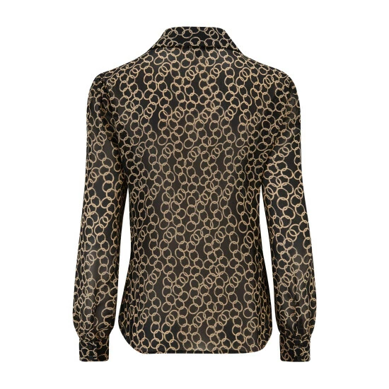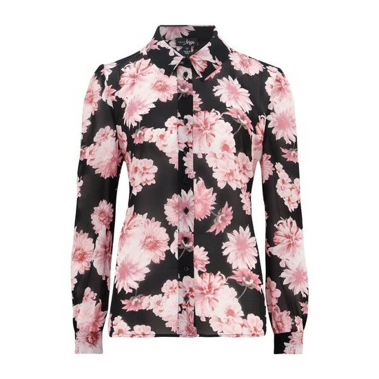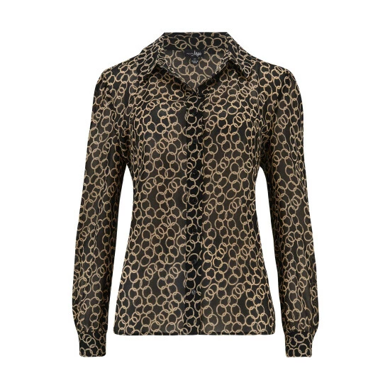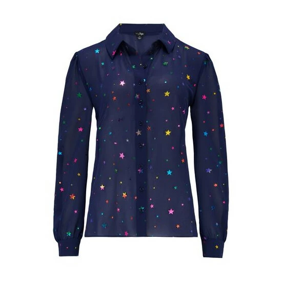 Add a little bit of sparkle and glam to your wardrobe. This metallic chiffon shirt with all over star print adds a touch of glam to any look. Match this long sleeve button through shirt with faux leather trousers and barely there heels for a look that s hard to forget.