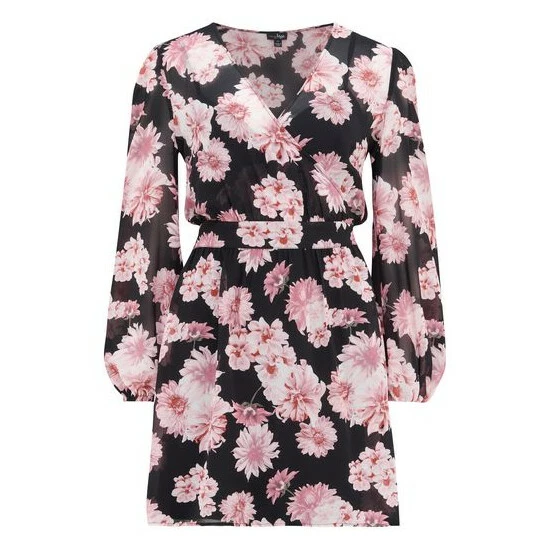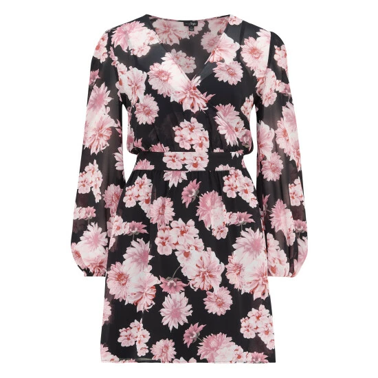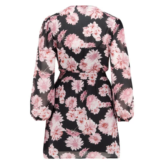 Pour Moi Black Natalya Chiffon Wrap Front Dress