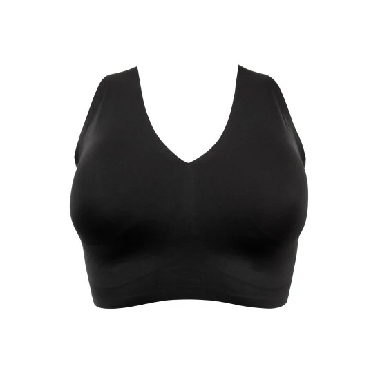 Non Wired. Removable moulded cups. Bralette shape. Super soft, smooth cool touch fabric. Bonded seamfree edges. Bonded panels within the bra to create gentle support. Racer back styling with V neck and back.