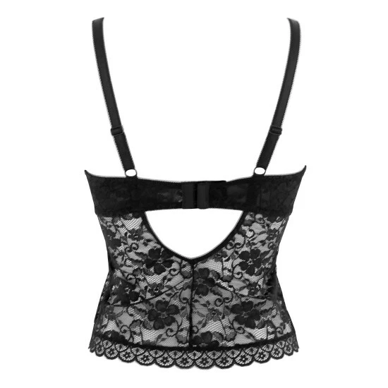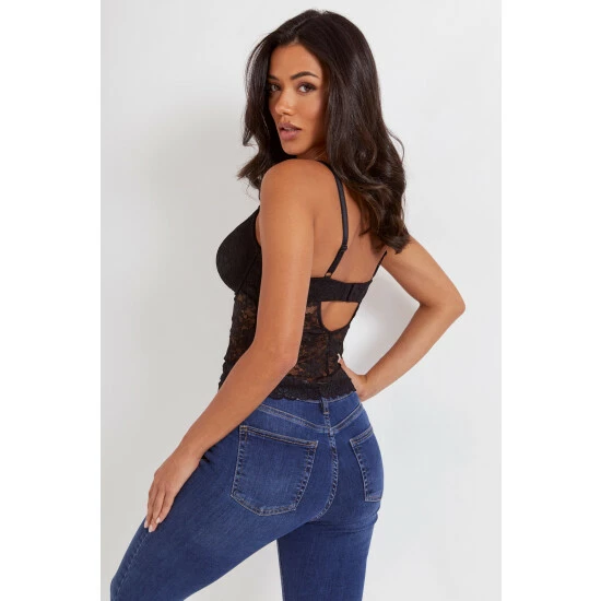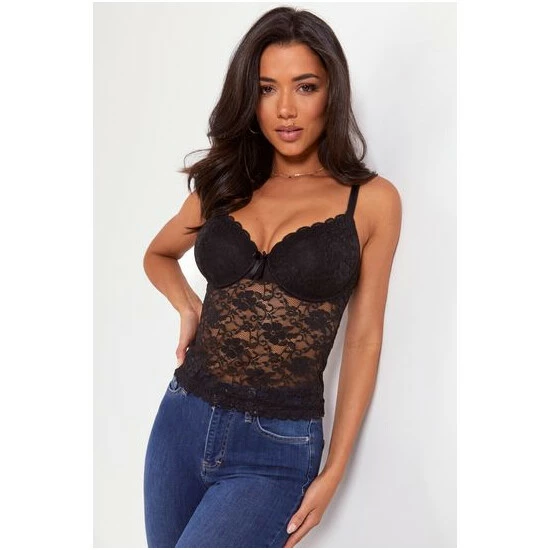 Add a touch of glamour to any look with our Rebel Cami Top. This all over lace, plunge style with push-up cup flatters and supports your body. With fully adjustable straps and back fastenings, this style is designed with your comfort in mind. Finished with a cute satin bow detailing at the front. Pair this with matching Flora Brazilian Brief or your favourite pair of jeans for a worn to be seen look. We take the impact that our business has on the planet seriously that is why our Rebel Cami Top is made from recycled lace.