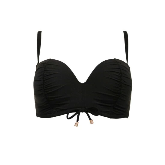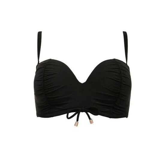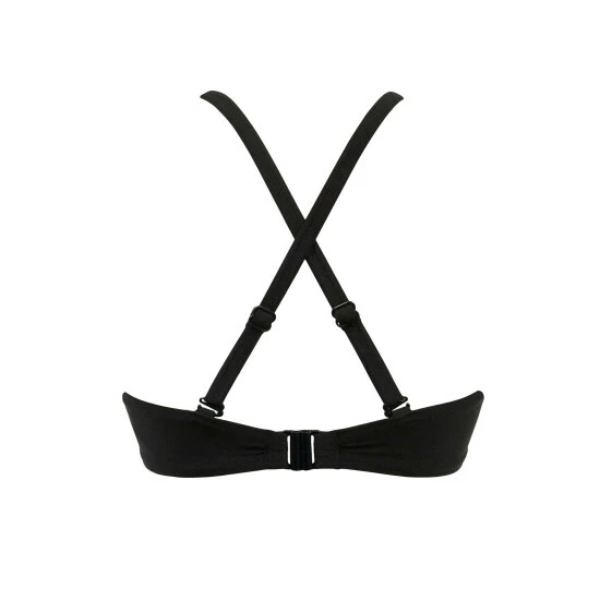 Underwired Padded balconette shape Removable halter tie Twist detail at front on cups Back clasp fastening Your holiday packing isn t complete without a black bikini top. This timeless lightly padded balconette style will look great under the sun. With twist detailing on the cups and a removable halter tie, make a style statement on your next break. With great coverage and removable halter tie you can wear this style how you want. Mix and match your style with our Santa Cruz bikini bottoms.