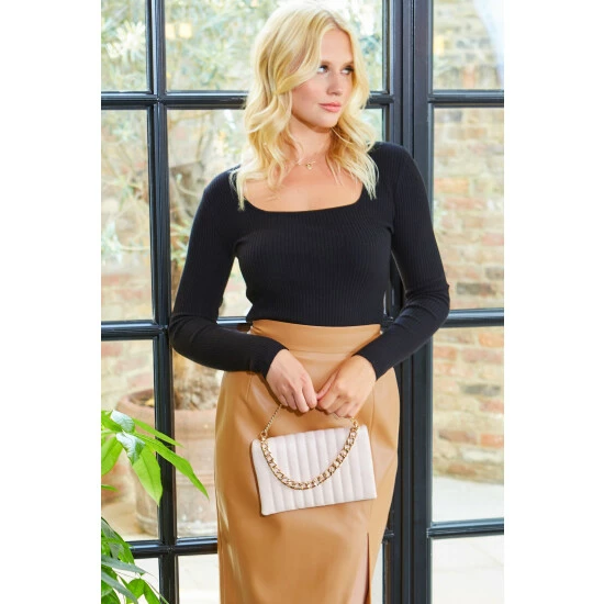 Our ribbed knit top has been designed for comfortable and effortless style. Made from sustainable EcoVero™ fabric this square neck top will be a style you ll reach for time and time again. This extremely flattering long sleeve fitted top will look fabulous with any outfit.