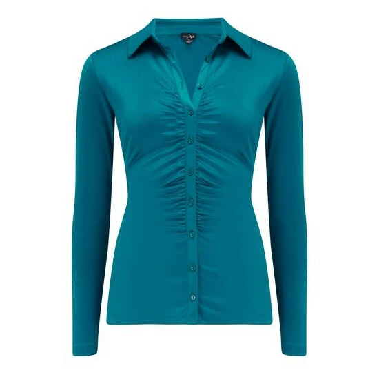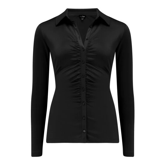Pour Moi Black Shine Jersey Ruched Front Shirt