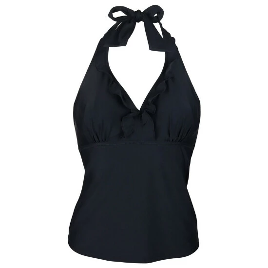 Non padded, hidden underwired gathered cups, frill at neck edge, continuing up the strap, halter neck tie, straight across back featuring an internal hidden wing with hook & eye fastening. When you’re going on holiday it’s always good to have at least one tankini stashed in your suitcase. Why? Because even the most body-con among us are allowed to have a day off. Over-indulged the night before? Fancy an extra croissant with your breakfast? The tankini lets you do it all in style – and still get a gorgeous tan if you wish. But if you still don’t consider yourself a tankini girl, our Splash version may have just what it takes to change your mind. Slimmer-fitting than most, the fabric hugs your curves, while the halter neck and underwire boost your shape – all of which add up to a gorgeous silhouette. So go on, have that dreamy, creamy cocktail and relax – you are on holiday, after all!