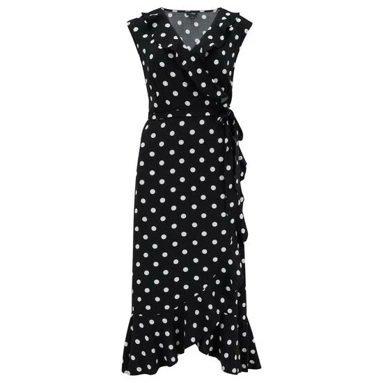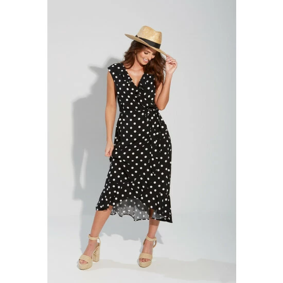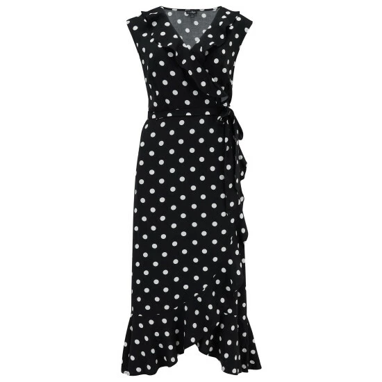 Pour Moi Black & White Polka Dot Spot Midaxi Wrap Beach Dress
