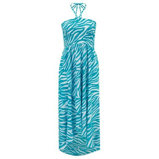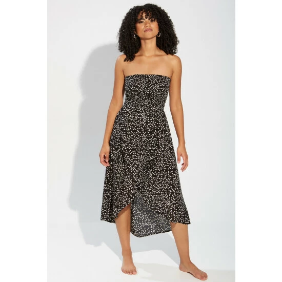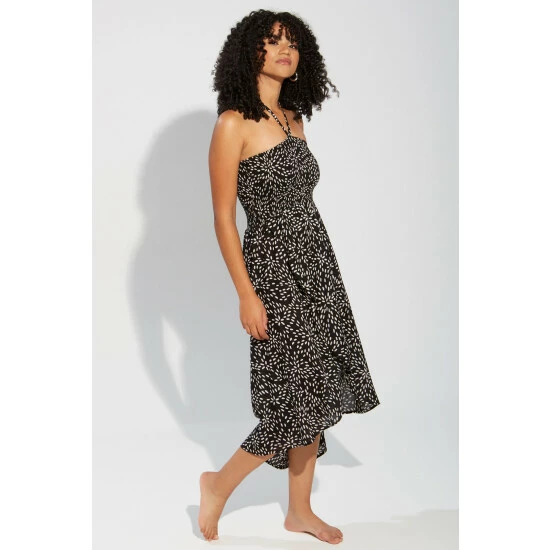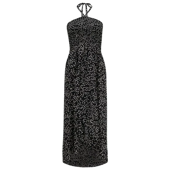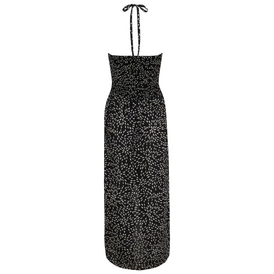Pour Moi Black & White Spot Halter Neck Strap Shirred Bodice Maxi Dress