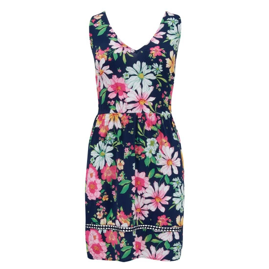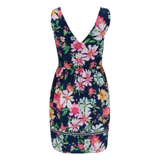 Pour Moi Blue Floral Lace Insert V Neck Dress