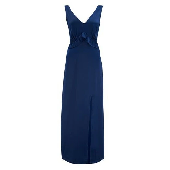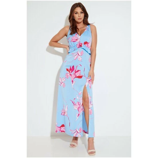 Pour Moi Blue Floral Millie Satin Woven Plunge Maxi Dress