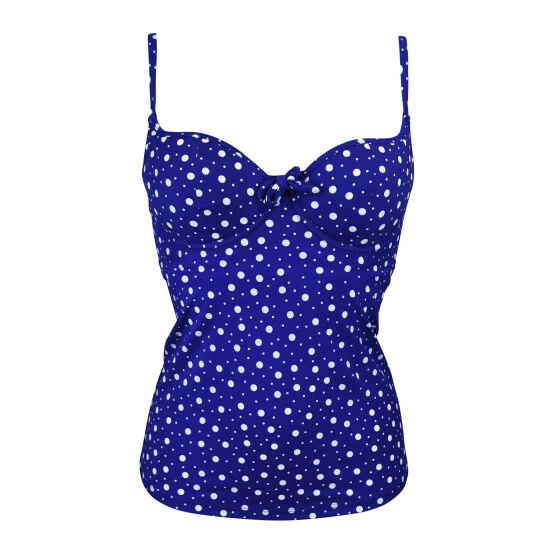 This Mini Maxi Underwired Tankini features light padding at the cups and a sweetheart neckline. It has adjustable straps and a bow at the centre front. Fastened at the back with a hidden hook and eye.
