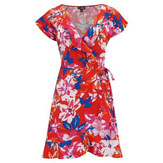 Wrap beach dress Lightweight woven viscose fabric Frill edge bodice and skirt wrapover Our Woven Frill Wrap Dress is the perfect beachwear style! With a lightweight texture, a perfect fluted hem and gentle frill to the neck edge, this ultra flattering shape is so easy to wear, making it the perfect beach to bar style!