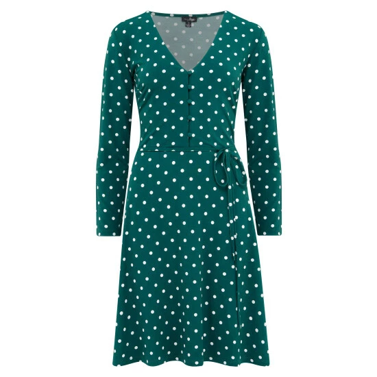 Could this vintage-inspired tea dress be the most wearable item in your wardrobe? With a nipped-in waist, V neckline and skater skirt, the slinky, jersey material will skim over your curves for an uber flattering fit. Its long fitted sleeves make it a great choice for winter – just add opaques and a chunky knit to keep out the chill. And, whether you dress up the tea dress with ankle boots, or dress it down with trainers, this winter take on florals will leave you feeling in full bloom. Love to do good as you look good? This item is made with recycled polyester so you can do your bit for the planet. It s made by repurposing plastic bottles that would normally end up in the ocean.