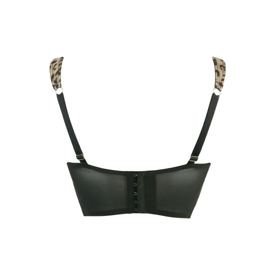 Underwired Padded Satin front panelling with soft powermesh back Jewel droplet detail at front Luxe rose gold hardware Plunging longline shape Partially adjustable straps Hook and eye fastening up back.