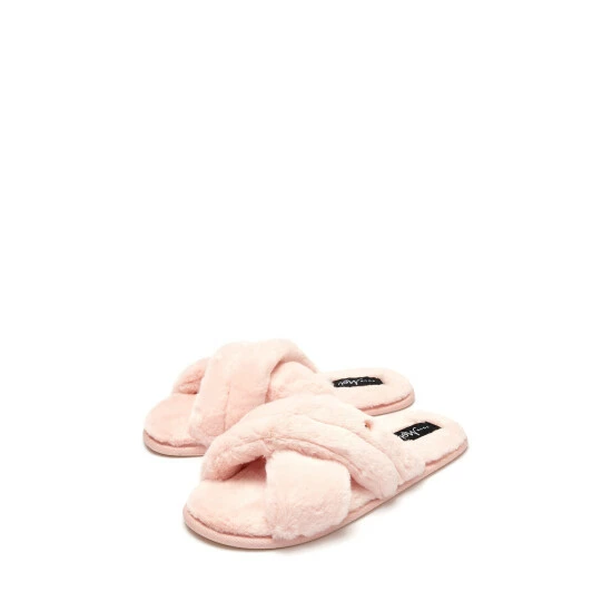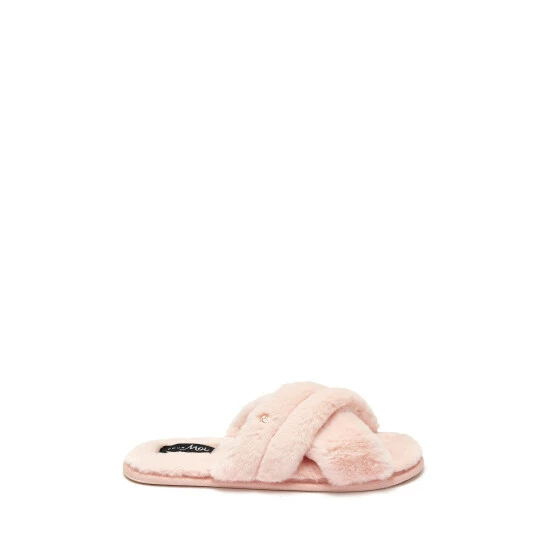 Pour Moi Pink Faux Fur Crossover Slider Slipper