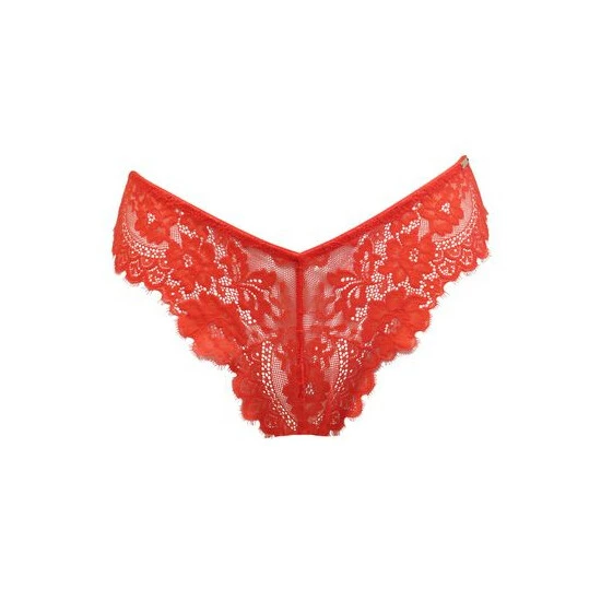 High leg V shape brief. Beautiful eyelash lace with scalloped edging. Luxe gold hardware. Elasticated waistband. It’s time to add some lace to your lingerie. Take your legs to new heights with this beautiful v shape brief adorned in eyelash lace and scalloped edging. The luxe gold hardware adds a touch of fabulous style to this delicate brief. Combine with the matching lace bra for a complete feminine look.