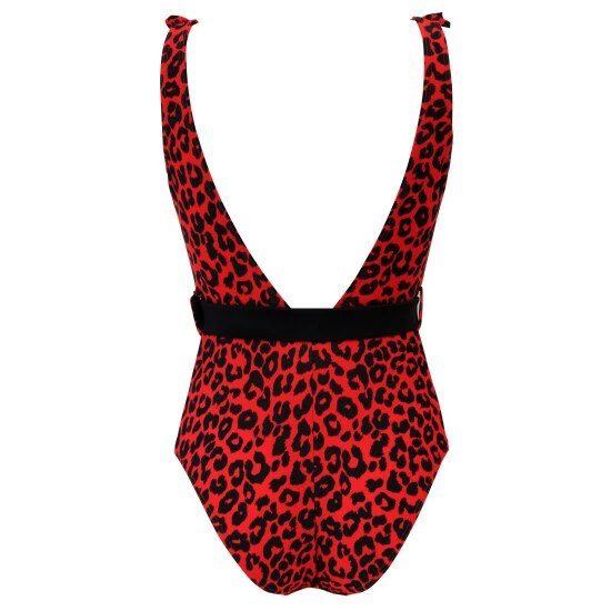 Pour Moi Red Frill Neck Belted Control Swimsuit