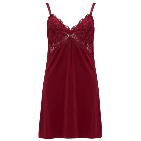 Beautiful cross dyed lace Soft lined cups Super soft microfibre skirt Contrast blush bows Sheer lace insert at back Adjustable straps Add a touch of feminine luxe to your nightwear look with our gorgeous Opulence Chemise. This luxe style is perfect for lounging in luxury and features cross dyed lace cups and a super soft microfibre skirt, for a stylish and feminine feel.