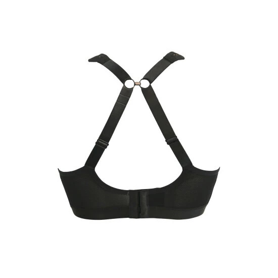 Non-wired, Non padded, Cushioned straps for comfort Partly adjustable straps, J-hook fastening at the back for extra support and hold allowing you to convert to a racer backHook and eye fastening at the back, Breathable soft microfibre fabric, Firm mesh back wing, Pair with matching legging