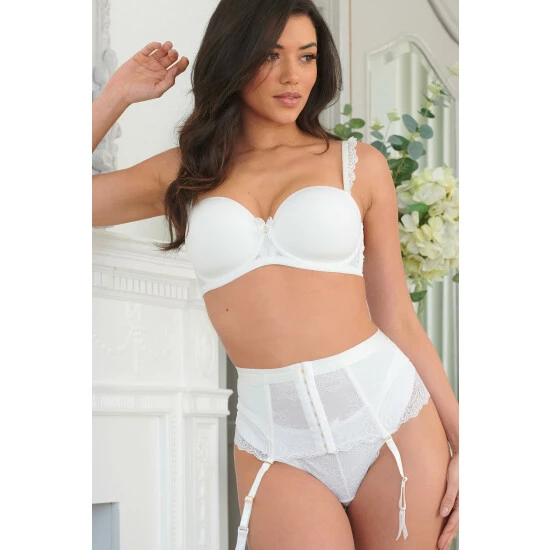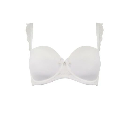 Underwired Moulded cups Removable, adjustable straps included Hook and eye fastening.