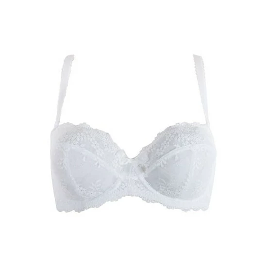 Underwired Strapless bra Removable side sling pads Pretty Picot lace elastic with silicone edging to give maximum support All over floral lace with scalloped lace edging Sheer bow at the centre front Fully adjustable and removable straps Love even your strapless bras to come with lashings of delicate lace? You’ll love the Flora. Underwired to give you great shape and support, the strapless style makes it a fantastic addition to your lingerie wardrobe and there are removable straps to give you even more options. Pretty Picot lace helps to frame the bra to perfection, while a sheer bow at the centre completes your flirty look.