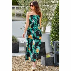 Pour Moi Black Tropical Removable Straps Shirred Bodice Maxi Dress
